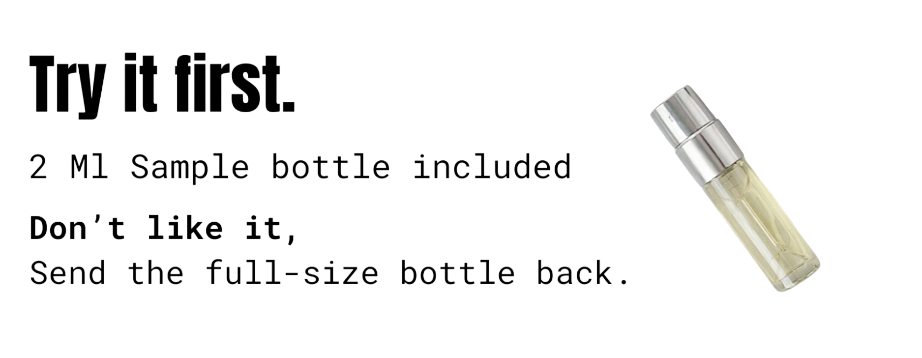 Every order comes with a 2 ml sample bottle. Try it first — if you don’t love it, simply return the unopened full-size bottle within 14 days for a full refund.